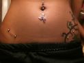 Professional piercers follow several steps during a piercing. First, the piercer cleans the area to be pierced with a disinfectant. Then, two dots are drawn. One dot marks the spot where the needle will enter the body. The other dot indicates where the needle will exit. If necessary, the area to be pierced is clamped. Navel piercings require a surgical clamp. The clamp pulls the skin to be pierced away from the rest of the body.